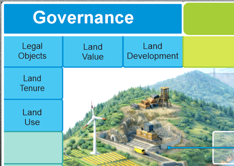 The governance domain integrates the key elements of land administration, including: