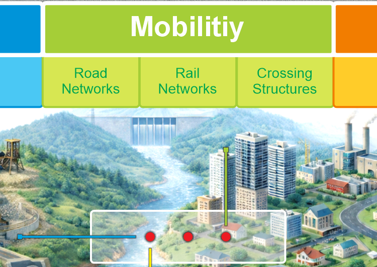 Mobility assets are managed as interconnected transport networks and structural crossings, supporting movement, accessibility, and territorial integration. These systems structure economic activity, urban form, and social connectivity, making mobility a central domain in territorial Digital Twin Systems.